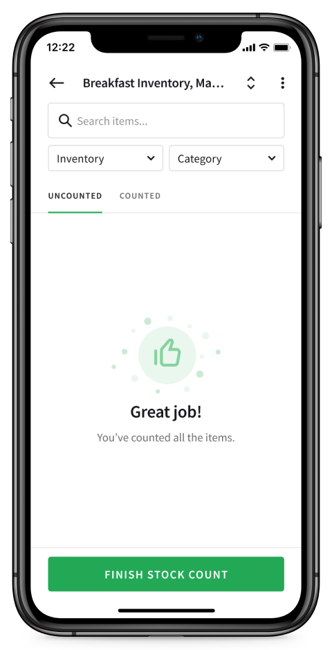The count flow moved items from uncounted to counted, giving staff a clear overview of what is still left to count.